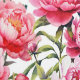Hermoso jardín de verano con magníficas peonías de acuarela rosa y púrpura sobre fondo blanco nevado