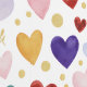 The most bold and diverse entry in the series, this pattern showcases watercolor hearts in a rich jewel-toned palette of deep sapphire, emerald, ruby red, and golden amber. The design maintains the whimsical additions of gold botanical sprigs and hollow heart outlines. This high-contrast arrangement against a white backdrop creates a sophisticated yet playful look suitable for luxury gift wrap or creative branding.