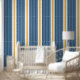 Papel Pintado Mango azafrán ancho, rayas azul y blanco turbio