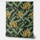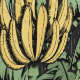 Este exótico papel pintado a gran escala incluye bananas amarillas dibujadas a mano y hojas con tinta negra, con detalles de escotilla cruzada, todo con un elegante fondo casi negro. El fondo presenta un sutil patrón de gotas de lluvia en un tono más ligero. El tamaño del patrón es de 24" por 24"