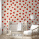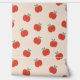 Pequeñas manzanas rojas jugosas en un estilo de garrapata en un papel pintado de color beige. Perfecto para decoraciones frutales y vibraciones felices.