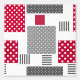 Maqueteo de puntos de polka roja gris sobre fondo blanco