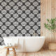 Eleva tu espacio con esta moda y un papel pintado moderno con un sofisticado patrón de conchas de vieiras blancas y negras adornadas con perlas punteadas. Perfecto para crear una declaración minimalista pero elegante en cualquier habitación. Este papel pintado es fácil de aplicar y quitar, por lo que es ideal para los inquilinos o para los amantes de refrescar su decoración.