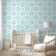 Papel Pintado Margarita delicada blanca y turquesa, patrón de pu