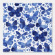 Patrón de mariposa color agua en azul marino índigo sobre un fondo blanco. Arte original de Nic Squirrell.