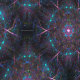 Múltiples instancias de una imagen fractal multicolor bastante intrincada en una matriz de desvío regular; en un fondo oscuro.