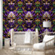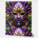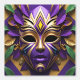 Máscara de Mardi Gras 1 Fondo de pantalla de Espíritu de Carnaval La imagen es una obra de arte digital con una máscara estilizada y ornamentada como tema central. La máscara es predominantemente púrpura y dorada, con patrones geométricos intrincados y elementos de diseño simétricos. Tiene un acabado suave y brillante, dándole una apariencia pulida. La máscara está adornada con hojas violetas y verdes que le dan un toque natural y orgánico al diseño, por lo demás estructurado. El fondo es un color dorado rico que complementa los acentos dorados de la máscara. Los agujeros oculares de la máscara son negros profundos, lo que crea un sorprendente contraste con los colores vivos. La composición general es equilibrada y visualmente cautivadora, con una mezcla armoniosa de colores y texturas