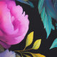 Las peonías de colores vivos y los bebés respiran sobre fondo negro.