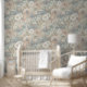 Papel Pintado Mezcla bohemia verde azulada, magenta, morada sobr