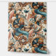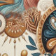 La pintura al óleo ilustrativa, de inspiración natural, de espíritu libre, de estilo bohemio, presenta flores y una mezcla de patrones y texturas en un fondo crema, amarillo mostaza, verde azulado y magenta, perfecto para cualquier celebración o regalo de decoración.