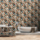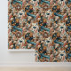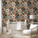 Papel Pintado Mezcla bohemia verde azulada, magenta, morada sobr
