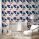 This wallpaper is more than just decor; it's a complete work of art that blends classic beauty with contemporary boldness. It features a rich floral pattern painted in watercolor, where deep navy and dark blue flowers intertwine with delicate touches of blush pink and soft peach hues.