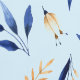 Hojas botánicas en un patrón sin costura con fondo azul claro.