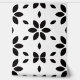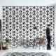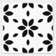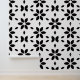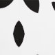 A chic black and white abstract floral print features elegant black flower petal shapes on a crisp white background.