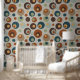 Este papel pintado divertido y groovy es para los amantes del diseño retro, con un patrón circular de estilo moderno a mediados de siglo, colorido y elegante con acentos verdes, azules y rojo naranja. Ideal para una habitación entera o para una pared. *Todos mis diseños son mis propios ilustraciones y arte originales, por lo tanto están sujetos a la protección de los derechos de autor. Tipo de M. ______________________________________________