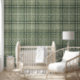 Papel Pintado Moderna Burlap Rústica Plaid Green