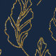 Papel Pintado Modernas hojas doradas Patrón botánico azul real