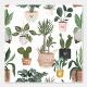 Papel Pintado Monograma Planta Loca Lady Watercolor Plantas Pota