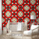 Papel Pintado Mosaico popular étnico beige rojo vibrante