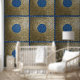 Papel Pintado Mosiac Square Pattern Blue Gold Peeling Stick