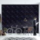 Unveil the magic of the cosmos with this stunning mystical wallpaper design. This dramatic pattern features intricate golden line work depicting celestial bodies, including smiling suns, crescent moons, classical star constellations, and majestic swirling galaxies. Set against a deep, dark navy blue background, the golden detailing and central sparkling band of stars create an elegant, antique, and slightly occult aesthetic. Ideal for a feature wall in a moody bedroom, a unique office, a creative studio, or a themed powder room, this design adds a sophisticated, mystical flair to any interior space. Search ID1239 to see all the products in this design set. Note: design adapted from generative content.