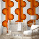 Papel Pintado Naranja Círculos Marrones Oscuros Patrón de líneas