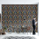 Papel Pintado Naranja de oro azul oscuro Art Nouveau