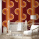 Papel Pintado Naranja Marrón oscuro Círculos rojos Olas Líneas P