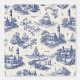 A classic nautical toile featuring detailed, intricate illustrations of a coastal village, complete with lighthouses, sailboats, and seaside life in traditional deep blue on a natural linen texture. This vintage pattern is perfect for creating bespoke curtains, upholstery, and apparel with an elegant, traditional, and charming seaside aesthetic.