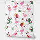 Navidades Fiesta Flamingo Rosa | Papel tapiz de patrón de vacaciones de palo y palo presenta un patrón de flamencos con globos fiestas y gorras Navidades entre las plantas de cactus floridas. Perfecto para decoración Navidad, fiestas Navidades, decoración casera, decoración de vacaciones y fiestas de vacaciones. Creado por Evco Holidays www.zazzle.com/store/evcoholidays
