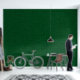 Papel de escritorio negro sobre hojas de cálculo geométricas verdes