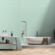 Papel Pintado Neutral verde azulado con puntos de Polka Blanco