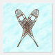 Un par de raquetas cruzadas superpuestas en una imagen de fondo nevada. Hay varios estilos diferentes de raquetas de nieve tradicionales. Los que aparecen aquí son de Ash y moosehide babiche (webbing) en el patrón de Alaska. Las raquetas de nieve de Alaska, más largas y más delgadas que otros estilos, como el pepino, permiten una puerta más natural y son perfectas para los viajes de travesía. Las puntas ligeramente volteadas te permiten arrastrar un poco los pies. Se aconseja llevar raquetas de nieve para los excelentes cielos; generalmente en el peor momento posible.