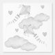 Cometas acuarelas, nubes y corazones para la guardería infantil neutral en escala de grises.
