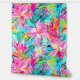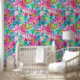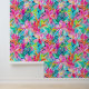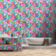 Un patrón impecable con nenúfares pintados en tonos rosas sobre un fondo verde minado. El diseño muestra la elegancia y belleza de los azulejos con colores ricos y un entorno fresco y relajante