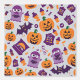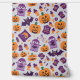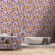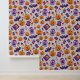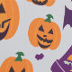 Este lindo papel de pared presenta un patrón hecho de objetos de Halloween como murciélagos, calabazas, etc.
