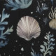 Elegante diseño moderno de fondo oceánico con corales y conchas.