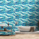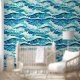 Ideal para cualquier establecimiento de playa; restaurante de isla costera; hoteles de playa; lodges; complejos turísticos y chalés, este azul oscuro y turquesa mezclado con murales blancos presenta olas ondulantes y pequeños caballos blancos que fluyen de izquierda a derecha. Trae la playa en el interior, con este estilo moderno, contemporáneo y elegante, que es fácil de pelar y se pega a las paredes lisas y texturadas.