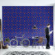 Papel Pintado Orange On Blue Polka Dots Pattern Design