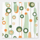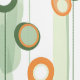 Esta obra de arte presenta un diseño elegante y minimalista de formas circulares y alargadas, dispuestas en una alineación vertical que recuerda a los diseños retro-futuristas. La composición se basa en una paleta de colores fresca de color verde, naranja y crema suave, creando un aspecto armonioso y equilibrado. Los círculos, algunos sólidos y otros delineados, parecen flotar a lo largo de líneas verticales delgadas, evocando las imágenes de planetas y órbitas. La combinación de líneas depuradas y formas suaves le confiere a la pieza un toque moderno y nostálgico que combina la estética moderna de mediados de siglo con un toque de estilo contemporáneo.