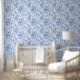 Papel Pintado Ornate Blue French Toile Roses Floral Wallpaper