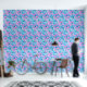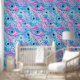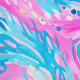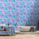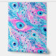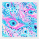 Un patrón impecable con ojos de pavo real rosados y azules sobre un fondo blanco. El diseño tiene un aspecto pintado a mano y combina tonos vivos y delicados para crear un efecto encantador y artístico.