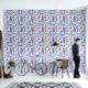 Un cuadro sin fisuras con una calle muy transitada en París con la Torre Eiffel al fondo, de estilo preppy, dibujado a mano con acentos rosa, azul y verde sobre un fondo blanco. El diseño capta la esencia animada y caprichosa de la vida parisina con colores vivos y detalles complejos.