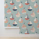 Pale green nautical with sail boats, seamless pattern wallpaper; great addition to any infant, child's bedroom or other.