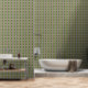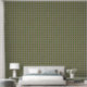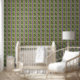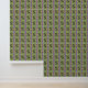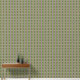 The original pattern by ZoeSPEAK on this Wallpaper is a blend of classic and modern elements. Pale lavender stripes on a soft green background rise between rows of Zoe’s original photograph of dark green leaves in a bouquet around a purple dot. And there are smaller dots in green and orange on the stripes, with thin yellow lines forming squares behind it all. The colors are calming.