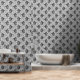 Papel Pintado Palomas y flores arte de aves negras y blancas
