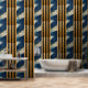 Papel Pintado Paneles de listones de madera de mármol azul dorad