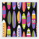 Masa negra con el color rosa de Fandango de Pantone, púrpura de Dahlia, verde del bosque Kelp, oro de cítricos y colorido de Lime Punch. Las tablas de surf gráficas de colores vivos crean este moderno diseño moderno de mediados de siglo. Con el nombre de Secret Beach en Kauai, este diseño es genial para esa casa de playa "secreta". Este diseño se presenta en varios colores. Genial para esa habitación de dormitorio.