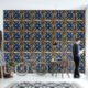 Papel tapiz de color palo y palo de diseño de inspiración india Rich Blue Gold Squares. Gran proyecto de diy fácil para los inquilinos propietarios diseñadores de interiores. Cree un aspecto personalizado para su oficina o negocio de apartamento de condo. Paredes decoradas muebles de exterior cabecero de la cocina puertas contraportadas o contenedores de almacenamiento. ¡Combinaciones y posibilidades infinitas. Disponible en vinilo texturado y liso. Tamaños 2'x4' 2'x8' 2x10' y 2'x12'.
