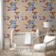 Perros persiguiendo bolas vivero Agradable patrón desigual repetido en rosa y azul El color suave neutro del fondo puede cambiarse para adaptarse a sus necesidades de decoración